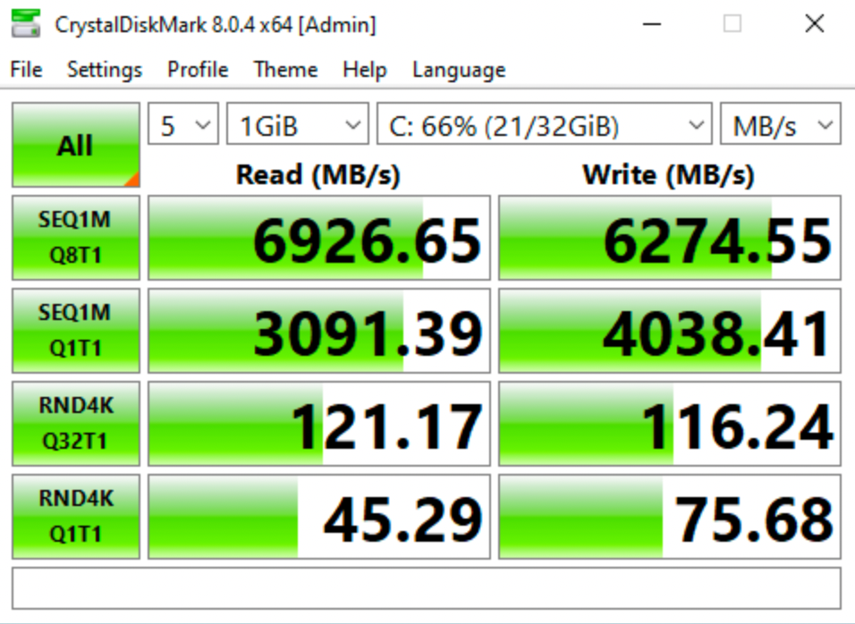 Testing performed using Qcow2 disk format, Windows 10 Pro Guest OS, and a Samsung 990 Pro SSD. For additional performance-tuning advice, see the article Improving the performance of a Windows Guest on KVM/QEMU.