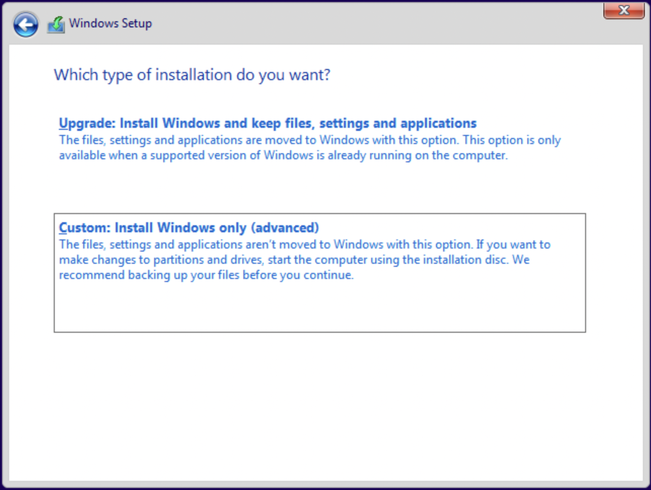 • Select 'Custom Install'
