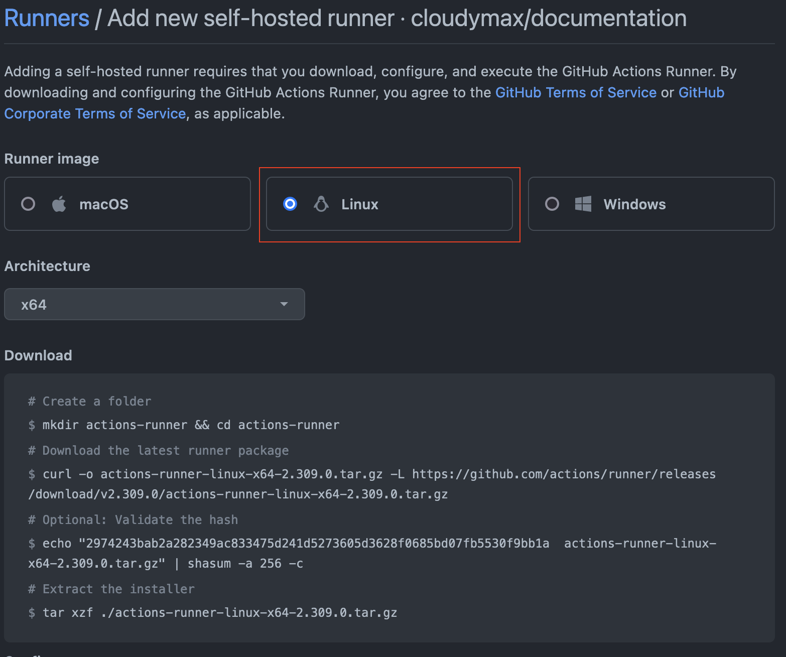 Linuxrunner option, then follow the on-screen instructions to download, install, and configure the runner application.