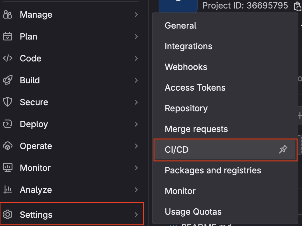 Settingsthen chooseCI/CDfrom the pop-out list.